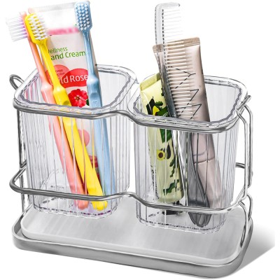 Voyra Freestanding Toothbrush Holder – 2 Slot Countertop Organizer for Toothbrushes, Razors, and Makeup Brushes